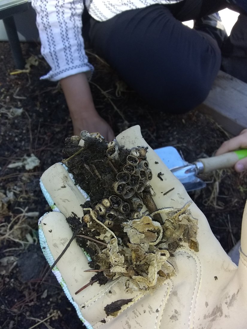 Another magical week! We learned about respect, hiked, worked, weighed the bunnies, and found a praying mantis egg sack! We planted some seedlings, and made fruit and cheese kabobs. We learned about potassium, and also learned about goats and identified several goat breeds and listened to some incredible presentations from the children.